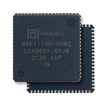 The Alaska® Ultra 88E1111 Gigabit Ethernet Transceiver is a physical layer device for Ethernet 1000BASE-T, 100BASE-TX, and 10BASE-T applications. It is manufactured using standard digital CMOS process and contains all the active circuitry required to implement the physical layer functions to transmit and receive data on standard CAT 5 unshielded twisted pair. |